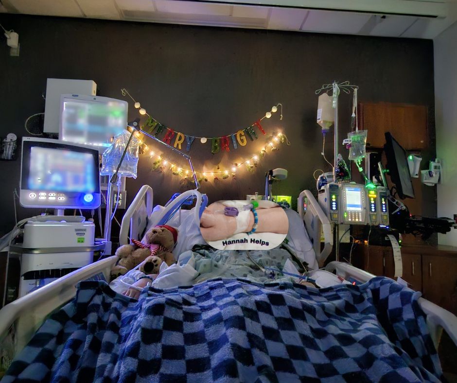 We have been so blessed to have such an amazing staff here at the hospital! These are two nurses that each have gone far above and beyond the call of duty with us. Nurse Hannah on the left rearranged her life and schedule so that she could work again today to be with us on what would have been her day off. Nurse Jackie on the right went shopping on her day off and then stopped by to give our Hannah these wonderful Christmas decorations. We have been playing Christmas music constantly since we began dropping the medications down. As many of you know, Hannah loves both food and Christmas! She was excited, like in July, to get the semi load of Christmas trees in at Hobby Lobby, where she worked! Last week she was making it very clear that since the world is forgetting Thanksgiving, Christmas music was going to begin the first of November, rather than after Thanksgiving. We have been calling the IV hanging stand, her Christmas tree. Now the room is decorated, and there is music. Some have gotten sentimental about the idea of snow, but hey, let’s not get too crazy! God has us here for a reason. Being able to meet such wonderful individuals has certainly been one of them, and we are so humbled.