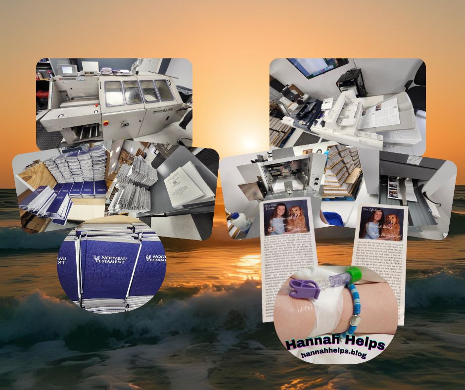 Yesterday we had the opportunity to go up to Bearing Precious Seed to help print and fold our first printing of the Hannah Story Pamphlet in Spanish. We always enjoy being able to go and serve the Lord at this amazing ministry. Janean’s parents also came, and we were able to get 2,000 of these done in English and 3,000 in Spanish! Janean primarily worked on the tracts while the rest of us helped work on their other main project right now. The volunteers had recently completed 44,000 bilingual copies of John and Romans and now they are working on 25,000 French New Testaments for Cameroon in Central Africa. Josh and I did binding, Janean did the tracts, and Robert and Janean’s parents worked on collating the French New Testaments. We had a great time, as always!