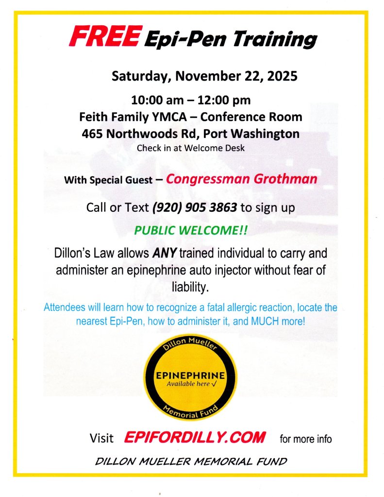 This weekend there is an opportunity to get your own hands-on Epi-pen training. Dillon’s family will be running this one. It is being held this Saturday, November 22 just north of Milwaukee. The rest of the details are in the picture.
