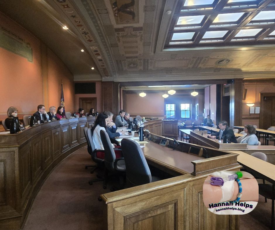 This week started like any other. We had the normal responsibilities of life, but nothing too exciting, but then in five minutes, things changed on Monday afternoon. Micah came home sick from work, and we were contacted by Versiti. Versiti is the organ, tissue, and blood donation organization that we worked with last November. There was a change in a hearing schedule for a proposed bill, and they asked us to share Hannah’s Story at the capital on Wednesday. Of course, we were glad to be able to go back to Madison and share her story, but this time it was with the State Assembly Committee on Education. We were supporting AB-749. This bill is being sponsored by Rep. Franklin (the tall guy in the picture) and Sen. Testin (The same senator who is sponsoring AB-128, which we supported previously regarding first responders carrying epinephrine). AB-749 would require public schools to have some form of organ and blood donation education as part of their high school student education. This “education” is pretty open ended in it’s scope and only needs to be included once in the student’s high school years. It can be part of a health class or wherever and however the school board would like to include it. The reason for this change is that this topic had been part of the public school driving instruction program, but now a large percentage of young people don’t take driver’s ed through their public school Many use online coursed and many others, in cities, use public transportation and do not get their driver’s license until they are 18+ at which point they are not required to take the same training as a minor. So, this bill would ensure that at some point in their grades 9-12 education, they would be able to understand what organ and blood donation is, and maybe more importantly, what it is not. Young people are able to sign up to become organ donors when they get their driver’s license, so it would be appropriate for them to understand their decision. As a side note, even though a minor may sign up to become a donor, that final decision would ultimately be the responsibility of parent/guardian, until they turn 18.