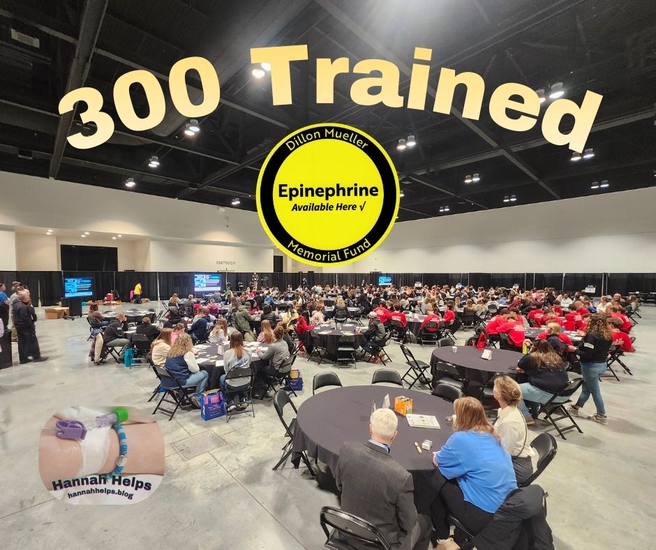 Dillon’s mom did the training and our family walked around helping the students as they used the training devices on themselves for practice. We train with five devices, and each one is a little different. It is good for people to have experience with multiple devices, since we never know what will be available if the need to use one would arise. The training took about an hour, and the kids listened well. They all wanted to be there, they were serious about the things that they were learning and they were aware of the responsibilities that they might have someday. At the end of the session, Hannah’s picture was shown, and I had a little bit of time to share her story with the group and to help make the need for this knowledge more “real” to them. I am always reminded that we (Dillon’s parents, Andrew’s parents, and us), have been brought together, not because of allergies directly, but rather because of the loss of our children. We are not highly trained medical professionals, like Dr. Markman. We were just parents who loved our families, and one day tragedy struck! Now we are working to use our children’s memories to save other people’s lives, and to keep other families from going through what we have.